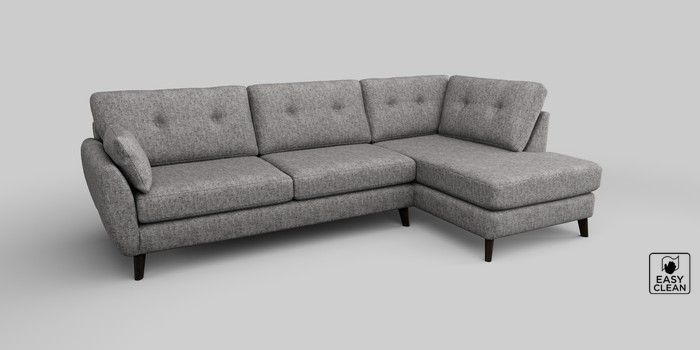 6.12.1 Buy Wilson Buttoned Back Large Corner Chaise - Right Hand Chunky Boucle Easy Clean Light Grey Retro Tapered - Dark from the Laura Ashley online shop Click here to use our website with more accessibility support, for example screen readers