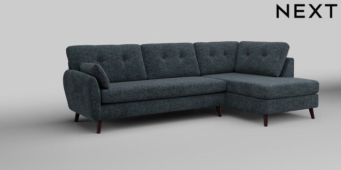 6.12.1 Buy Wilson Buttoned Back Large Corner Chaise - Right Hand Chunky Chenille Dark Navy Blue Retro Tapered - Dark Brown from the Laura Ashley online shop Click here to use our website with more accessibility support, for example screen readers