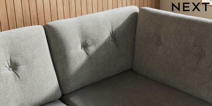 7.3.1 Buy Wilson Buttoned Back Large Corner Chaise - Right Hand Chunky Chenille Light Grey Retro Tapered - Mid from the Laura Ashley online shop