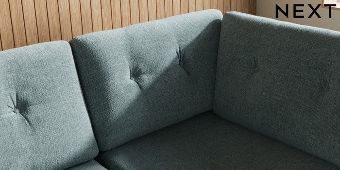 7.3.1 Buy Wilson Buttoned Back Large Corner Chaise - Right Hand Chunky Chenille Light Teal Green Retro Tapered - Light from the Laura Ashley online shop