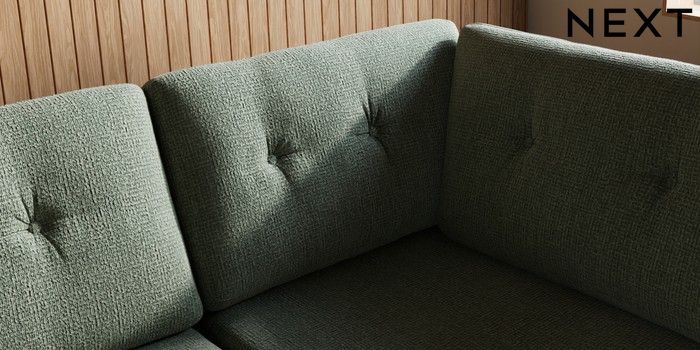 7.3.1 Buy Wilson Buttoned Back Large Corner Chaise - Right Hand Chunky Texture Mid Forest Green Retro Tapered - Dark from the Laura Ashley online shop Click here to use our website with more accessibility support, for example screen readers
