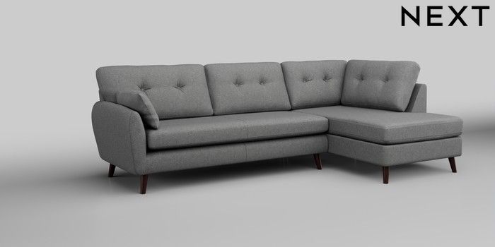 6.12.1 Buy Wilson Buttoned Back Large Corner Chaise - Right Hand Chunky Weave Mid Grey Retro Tapered - Dark Brown from the Laura Ashley online shop Click here to use our website with more accessibility support, for example screen readers