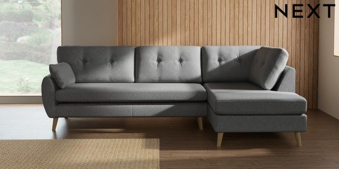 7.3.1 Buy Wilson Buttoned Back Large Corner Chaise - Right Hand Chunky Weave Mid Grey Retro Tapered - Light from the Laura Ashley online shop