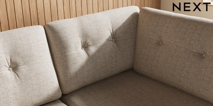 7.3.1 Buy Wilson Buttoned Back Large Corner Chaise - Right Hand Chunky Weave Mid Natural Retro Tapered - Light from the Laura Ashley online shop Click here to use our website with more accessibility support, for example screen readers