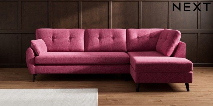 7.3.1 Buy Wilson Buttoned Back Large Corner Chaise - Right Hand Cotswold Chenille Dark Raspberry Pink Retro Tapered - Dark from the Laura Ashley online shop Click here to use our website with more accessibility support, for example screen readers