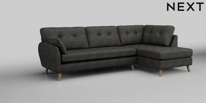 6.12.1 Buy Wilson Buttoned Back Large Corner Chaise - Right Hand Monza Faux Leather Easy Clean Dark Grey Retro Tapered - Light from the Laura Ashley online shop Click here to use our website with more accessibility support, for example screen readers