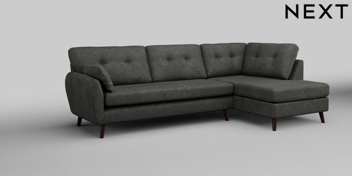 6.12.1 Buy Wilson Buttoned Back Large Corner Chaise - Right Hand Plush Chenille Dark Grey Retro Tapered - Dark Brown from the Laura Ashley online shop Click here to use our website with more accessibility support, for example screen readers