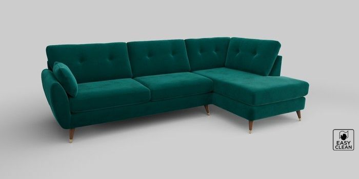6.12.13 Buy Wilson Buttoned Back Large Corner Chaise - Right Hand Plush Velvet Easy Clean Juniper Green Low Retro Tapered Metal Cap - Mid from the Laura Ashley online shop Click here to use our website with more accessibility support, for example screen readers