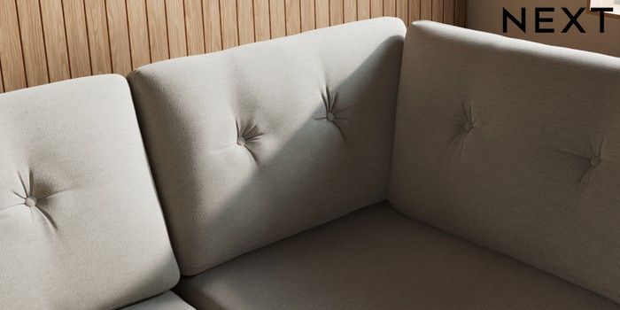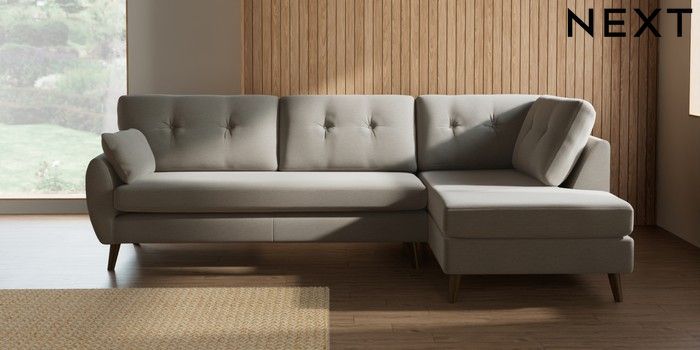 7.3.1 Buy Wilson Buttoned Back Large Corner Chaise - Right Hand Ripple Chenille Light Natural Retro Tapered - Mid from the Laura Ashley online shop Click here to use our website with more accessibility support, for example screen readers