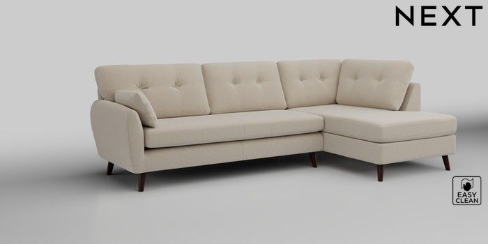 6.12.1 Buy Wilson Buttoned Back Large Corner Chaise - Right Hand Tweedy Blend Easy Clean Oyster Retro Tapered - Dark Brown from the Laura Ashley online shop Click here to use our website with more accessibility support, for example screen readers