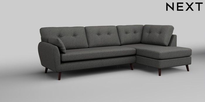 6.12.1 Buy Wilson Buttoned Back Large Corner Chaise - Right Hand Tweedy Chenille Dark Grey Retro Tapered - Dark Brown from the Laura Ashley online shop Click here to use our website with more accessibility support, for example screen readers