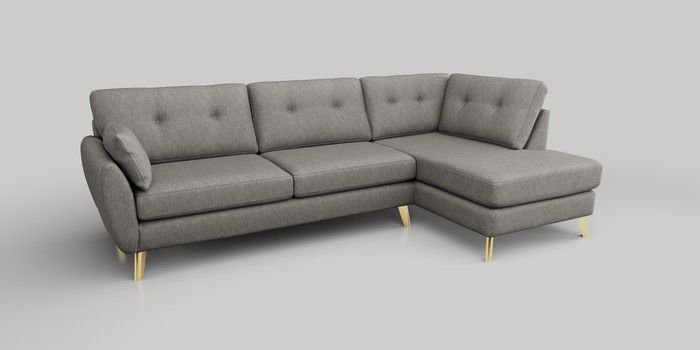 6.12.1 Buy Wilson Buttoned Back Large Corner Chaise - Right Hand Tweedy Chenille Mid Grey Metal Tapered - Gold from the Laura Ashley online shop Click here to use our website with more accessibility support, for example screen readers