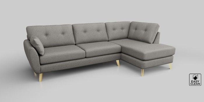 6.12.1 Buy Wilson Buttoned Back Large Corner Chaise - Right Hand Woven Chenille Easy Clean Light Grey Metal Tapered - Gold from the Laura Ashley online shop Click here to use our website with more accessibility support, for example screen readers