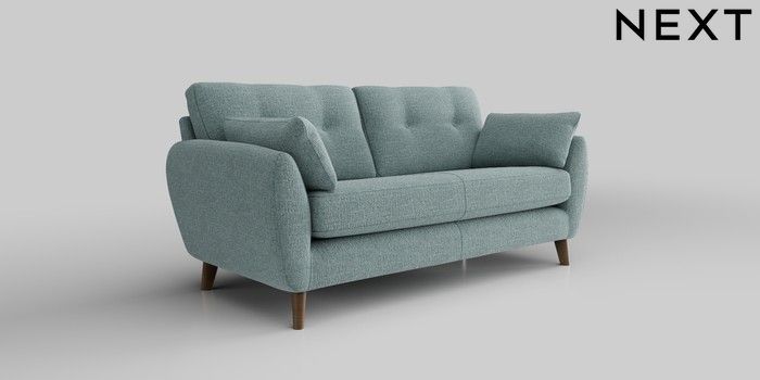 6.12.1 Buy Wilson Buttoned Back 3 Seater Small Sofa Chunky Chenille Light Teal Green Retro Tapered - Mid from the Laura Ashley online shop Click here to use our website with more accessibility support, for example screen readers