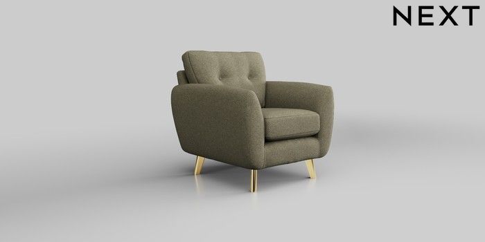 6.12.1 Buy Wilson Buttoned Back Armchair Tweedy Chenille Mid Moss Green Metal Tapered - Gold from the Laura Ashley online shop Click here to use our website with more accessibility support, for example screen readers