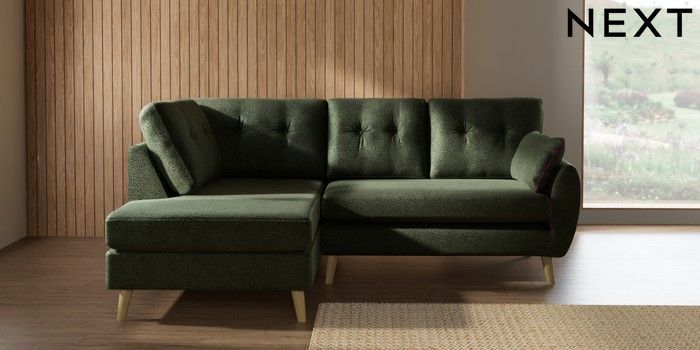 7.3.1 Buy Wilson Buttoned Back Medium Corner Chaise - Left Hand Boucle Chenille Dark Moss Green Retro Tapered - Light from the Laura Ashley online shop