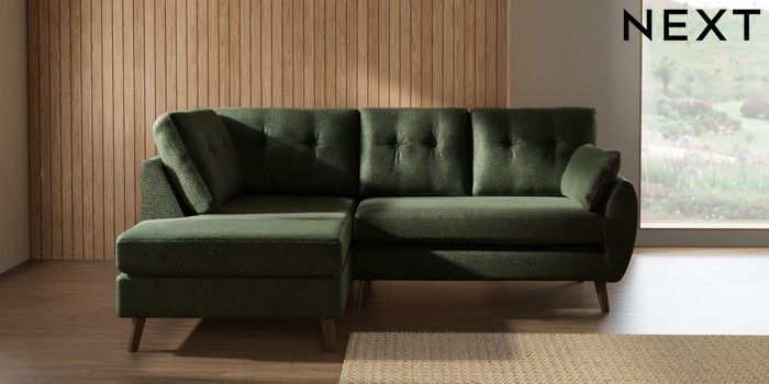 7.3.1 Buy Wilson Buttoned Back Medium Corner Chaise - Left Hand Boucle Chenille Dark Moss Green Retro Tapered - Mid from the Laura Ashley online shop
