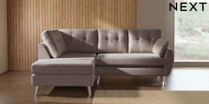 7.3.1 Buy Wilson Buttoned Back Medium Corner Chaise - Left Hand Boucle Chenille Light Natural Metal Tapered - Chrome from the Laura Ashley online shop Click here to use our website with more accessibility support, for example screen readers
