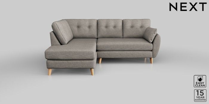 6.11.4 Buy Wilson Buttoned Back Medium Corner Chaise - Left Hand Boucle Weave Easy Clean Light Dove Grey Retro Tapered - Light from the Laura Ashley online shop Click here to use our website with more accessibility support, for example screen readers