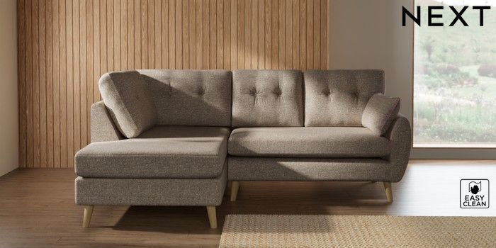 7.3.1 Buy Wilson Buttoned Back Medium Corner Chaise - Left Hand Chunky Boucle Easy Clean Mid Natural Retro Tapered - Light from the Laura Ashley online shop