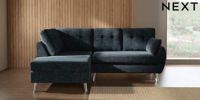 7.3.1 Buy Wilson Buttoned Back Medium Corner Chaise - Left Hand Chunky Chenille Dark Navy Blue Metal Tapered - Chrome from the Laura Ashley online shop Click here to use our website with more accessibility support, for example screen readers