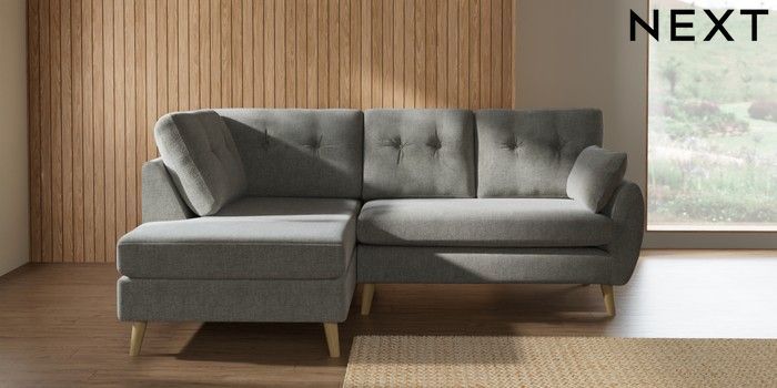 7.3.1 Buy Wilson Buttoned Back Medium Corner Chaise - Left Hand Chunky Chenille Light Grey Retro Tapered - Light from the Laura Ashley online shop