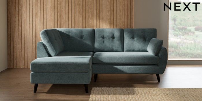 7.3.1 Buy Wilson Buttoned Back Medium Corner Chaise - Left Hand Chunky Chenille Light Teal Green Retro Tapered - Dark from the Laura Ashley online shop