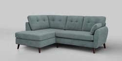 6.12.1 Buy Wilson Buttoned Back Medium Corner Chaise - Left Hand Chunky Chenille Light Teal Green Retro Tapered - Dark Brown from the Laura Ashley online shop Click here to use our website with more accessibility support, for example screen readers