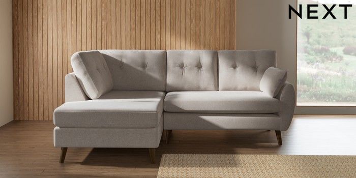 7.3.1 Buy Wilson Buttoned Back Medium Corner Chaise - Left Hand Chunky Chenille Oyster Retro Tapered - Mid from the Laura Ashley online shop