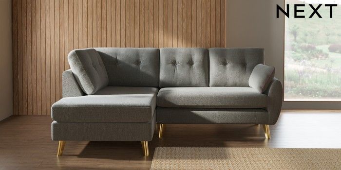 7.3.1 Buy Wilson Buttoned Back Medium Corner Chaise - Left Hand Chunky Texture Dove Metal Tapered - Gold from the Laura Ashley online shop Click here to use our website with more accessibility support, for example screen readers