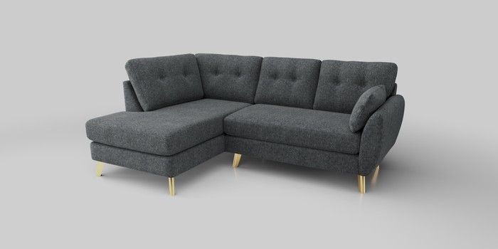 6.12.1 Buy Wilson Buttoned Back Medium Corner Chaise - Left Hand Cotswold Chenille Dark Grey Metal Tapered - Gold from the Laura Ashley online shop Click here to use our website with more accessibility support, for example screen readers