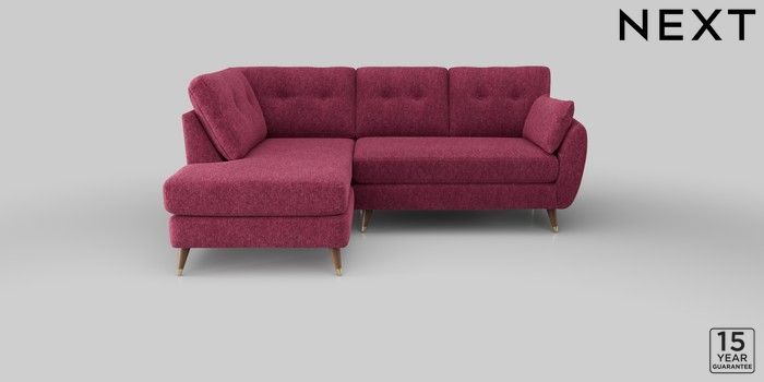 6.12.1 Buy Wilson Buttoned Back Medium Corner Chaise - Left Hand Cotswold Chenille Dark Raspberry Pink Low Retro Tapered Metal Cap - Mid from the Laura Ashley online shop Click here to use our website with more accessibility support, for example screen readers