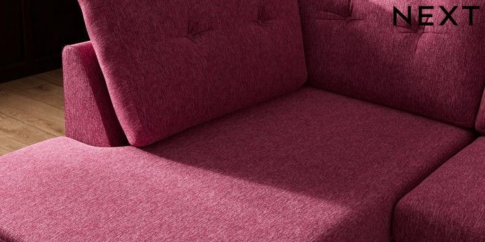 7.3.1 Buy Wilson Buttoned Back Medium Corner Chaise - Left Hand Cotswold Chenille Dark Raspberry Pink Metal Tapered - Gold from the Laura Ashley online shop
