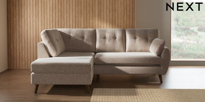 7.3.1 Buy Wilson Buttoned Back Medium Corner Chaise - Left Hand Cotswold Chenille Light Natural Retro Tapered - Mid from the Laura Ashley online shop