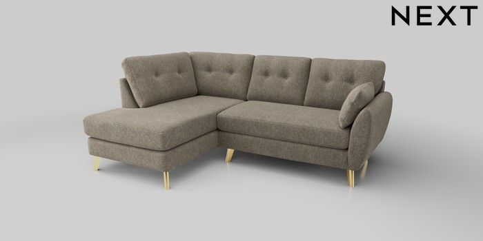 6.12.1 Buy Wilson Buttoned Back Medium Corner Chaise - Left Hand Cotswold Chenille Mid Mink Brown Metal Tapered - Gold from the Laura Ashley online shop Click here to use our website with more accessibility support, for example screen readers