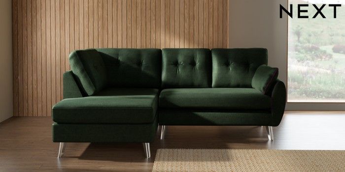 7.3.1 Buy Wilson Buttoned Back Medium Corner Chaise - Left Hand Luxe Chenille Dark Green Metal Tapered - Chrome from the Laura Ashley online shop Click here to use our website with more accessibility support, for example screen readers