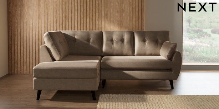 7.3.1 Buy Wilson Buttoned Back Medium Corner Chaise - Left Hand Luxe Chenille Mid Camel Beige Retro Tapered - Dark from the Laura Ashley online shop