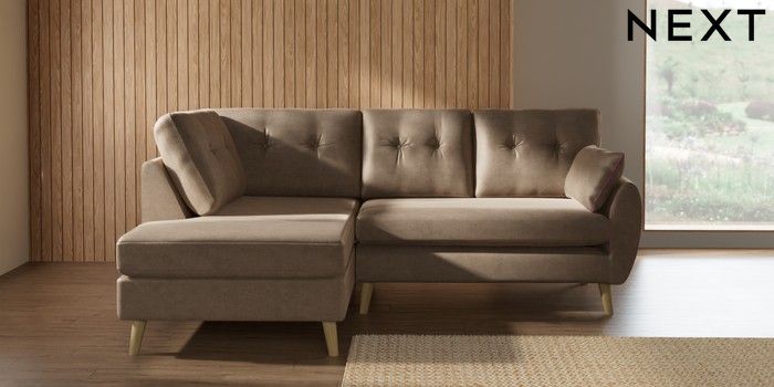 7.3.1 Buy Wilson Buttoned Back Medium Corner Chaise - Left Hand Luxe Chenille Mid Camel Beige Retro Tapered - Light from the Laura Ashley online shop