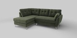 6.12.1 Buy Wilson Buttoned Back Medium Corner Chaise - Left Hand Luxe Chenille Mid Green Metal Tapered - Chrome from the Laura Ashley online shop Click here to use our website with more accessibility support, for example screen readers