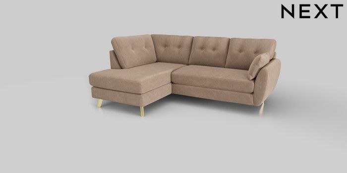 6.12.1 Buy Wilson Buttoned Back Medium Corner Chaise - Left Hand Luxe Chenille Mid Natural Metal Tapered - Gold from the Laura Ashley online shop Click here to use our website with more accessibility support, for example screen readers