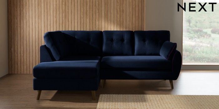 7.3.1 Buy Wilson Buttoned Back Medium Corner Chaise - Left Hand Luxe Chenille Navy Blue Retro Tapered - Mid from the Laura Ashley online shop