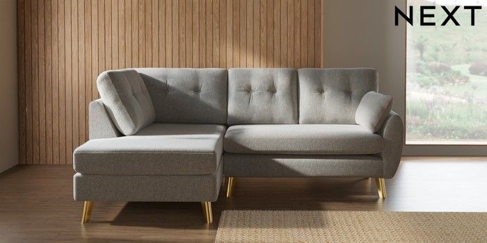 7.3.1 Buy Wilson Buttoned Back Medium Corner Chaise - Left Hand Multi Weave Light Blue Metal Tapered - Gold from the Laura Ashley online shop