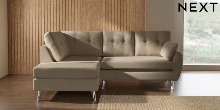 7.3.1 Buy Wilson Buttoned Back Medium Corner Chaise - Left Hand Natural Mix Light Natural Metal Tapered - Chrome from the Laura Ashley online shop Click here to use our website with more accessibility support, for example screen readers