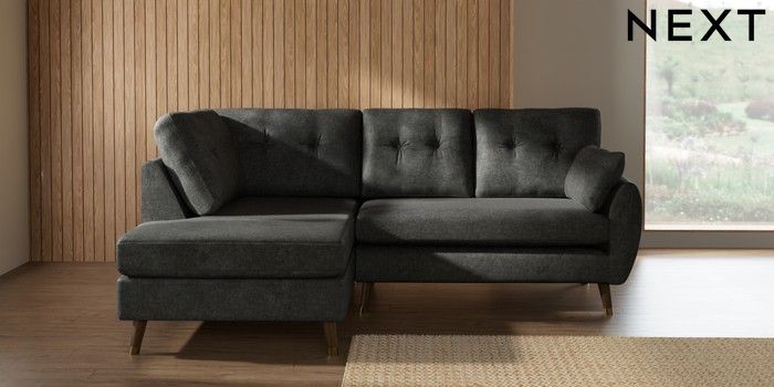 7.3.1 Buy Wilson Buttoned Back Medium Corner Chaise - Left Hand Plush Chenille Dark Grey Low Retro Tapered Metal Cap - Mid from the Laura Ashley online shop Click here to use our website with more accessibility support, for example screen readers
