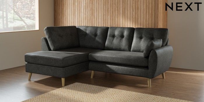 7.2.10 Buy Wilson Buttoned Back Medium Corner Chaise - Left Hand Plush Chenille Dark Grey Retro Tapered - Light from the Laura Ashley online shop Click here to use our website with more accessibility support, for example screen readers