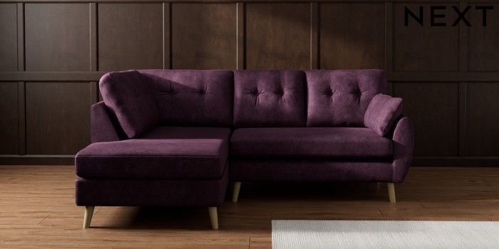 7.3.1 Buy Wilson Buttoned Back Medium Corner Chaise - Left Hand Plush Chenille Dark Plum Purple Retro Tapered - Light from the Laura Ashley online shop