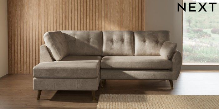 7.3.1 Buy Wilson Buttoned Back Medium Corner Chaise - Left Hand Plush Chenille Light Natural Low Retro Tapered Metal Cap - Mid from the Laura Ashley online shop Click here to use our website with more accessibility support, for example screen readers