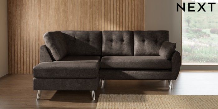 7.3.1 Buy Wilson Buttoned Back Medium Corner Chaise - Left Hand Plush Chenille Mink Brown Metal Tapered - Chrome from the Laura Ashley online shop Click here to use our website with more accessibility support, for example screen readers