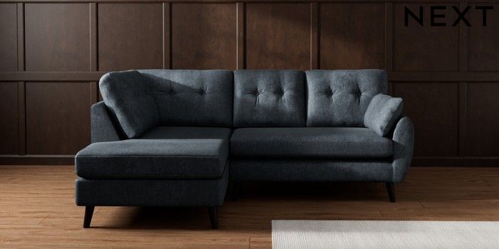 7.3.1 Buy Wilson Buttoned Back Medium Corner Chaise - Left Hand Plush Chenille Slate Blue Retro Tapered - Dark from the Laura Ashley online shop