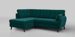 6.12.1 Buy Wilson Buttoned Back Medium Corner Chaise - Left Hand Plush Velvet Easy Clean Juniper Green Retro Tapered - Dark Brown from the Laura Ashley online shop Click here to use our website with more accessibility support, for example screen readers